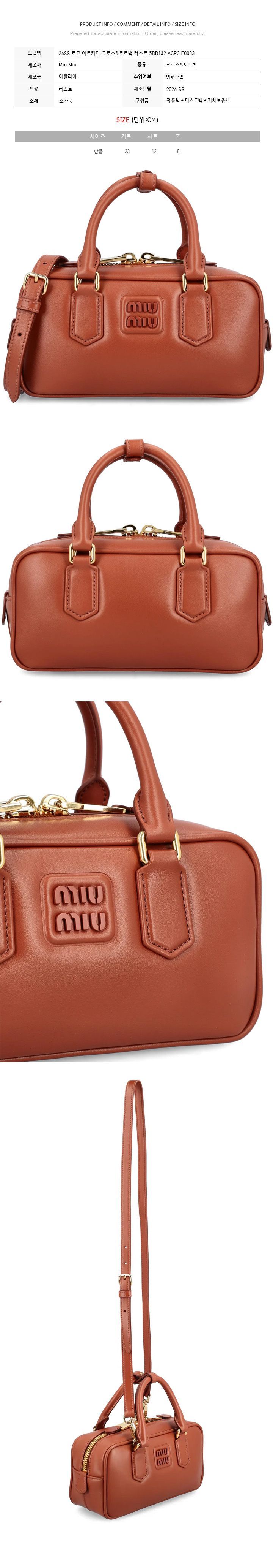 Product Name: Miu Miu 26SS Logo Arcady Crosto Tote Bag Rust 5BB142 ACR3 F0033 150726908