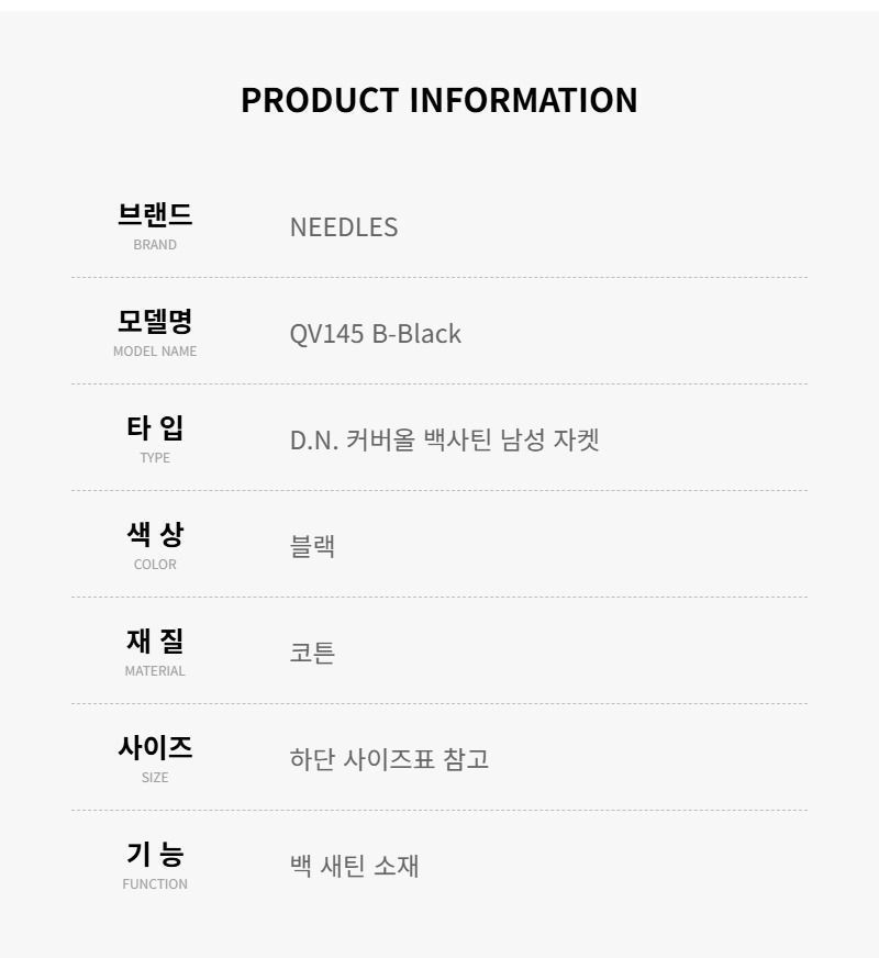 Product Name: Needles QV145 B-Black Coverall Satin Jacket 138567112
