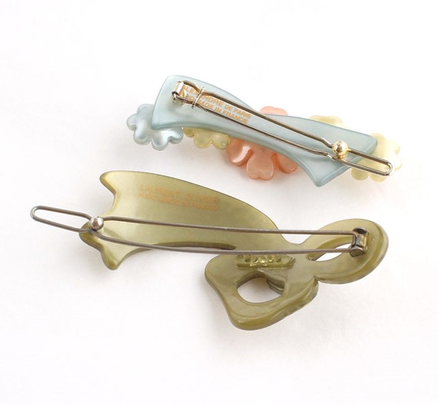 - Features olive green ribbon hairpin from the French handmade jewelry brand Roland Olivier