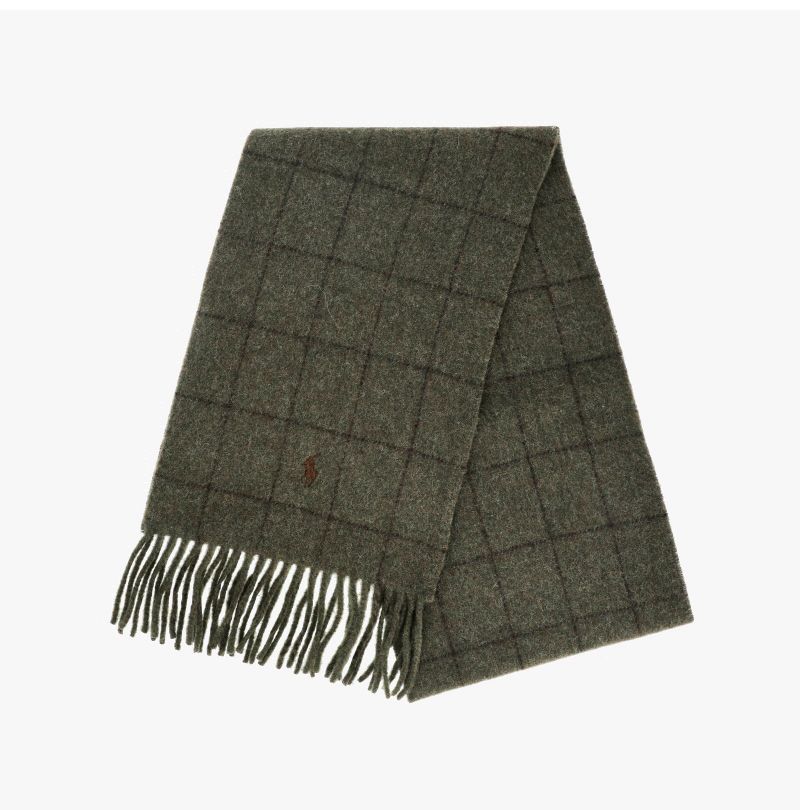 Product Name: Polo Ralph Lauren Pony Windowpane Plaid Reversible Fringed Scarf 144698673