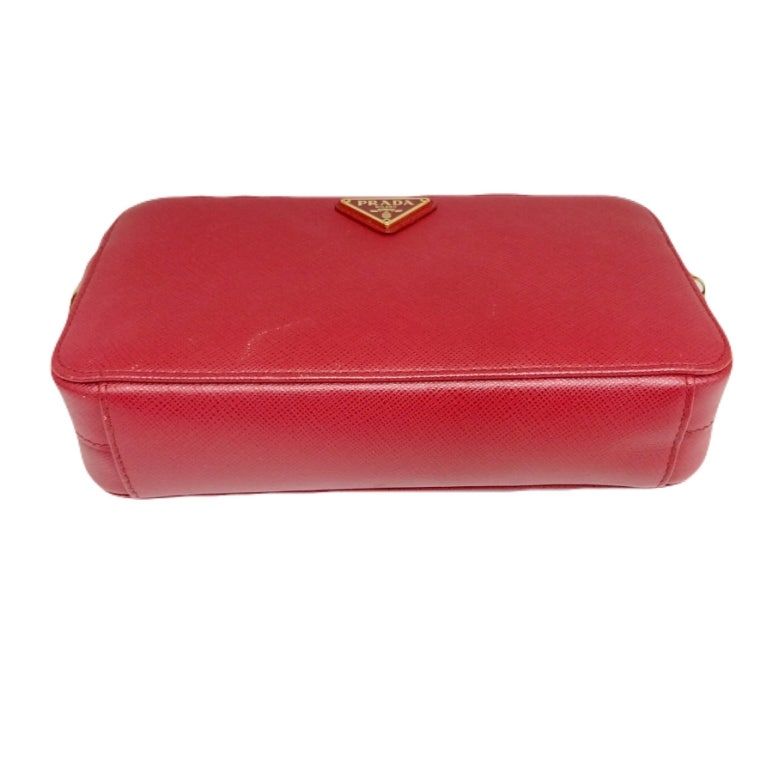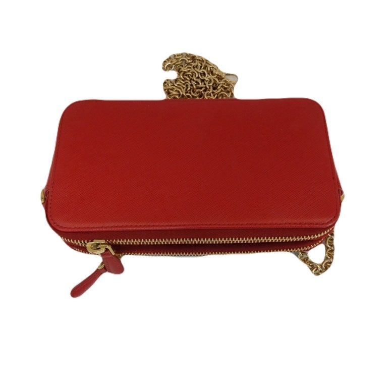 - Model: Red Saffiano Triang Gold Chain Double Zipper Mini Crossbody Bag 1DH010