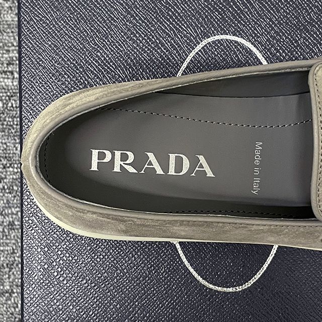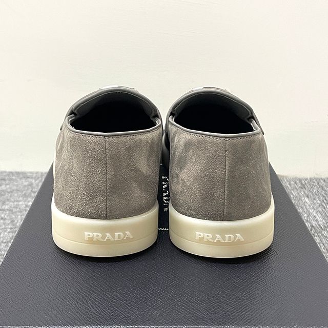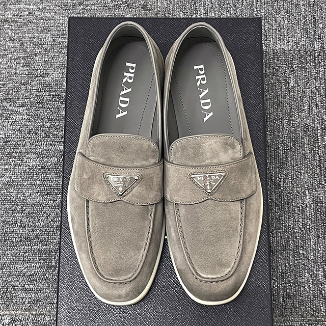 Product Name: Prada Triangle Logo Suede Loafers Gravel Grey (2DG124 103 F073E) 123472418