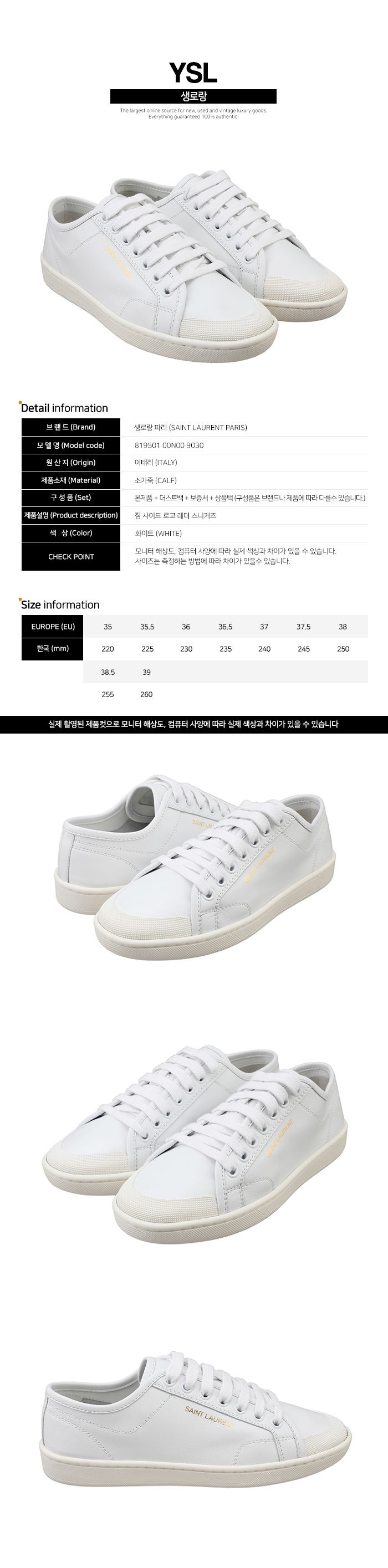 Product Name: Saint Laurent 5F Logo Leather Sneakers White 819501 00N00 9030 147035726
