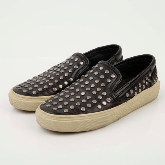 Product Name: Saint Laurent Black Leather Studded Slip-On Sneakers 35 48850081