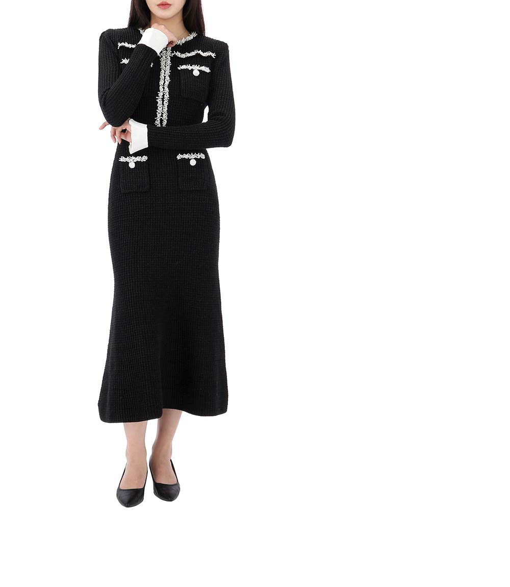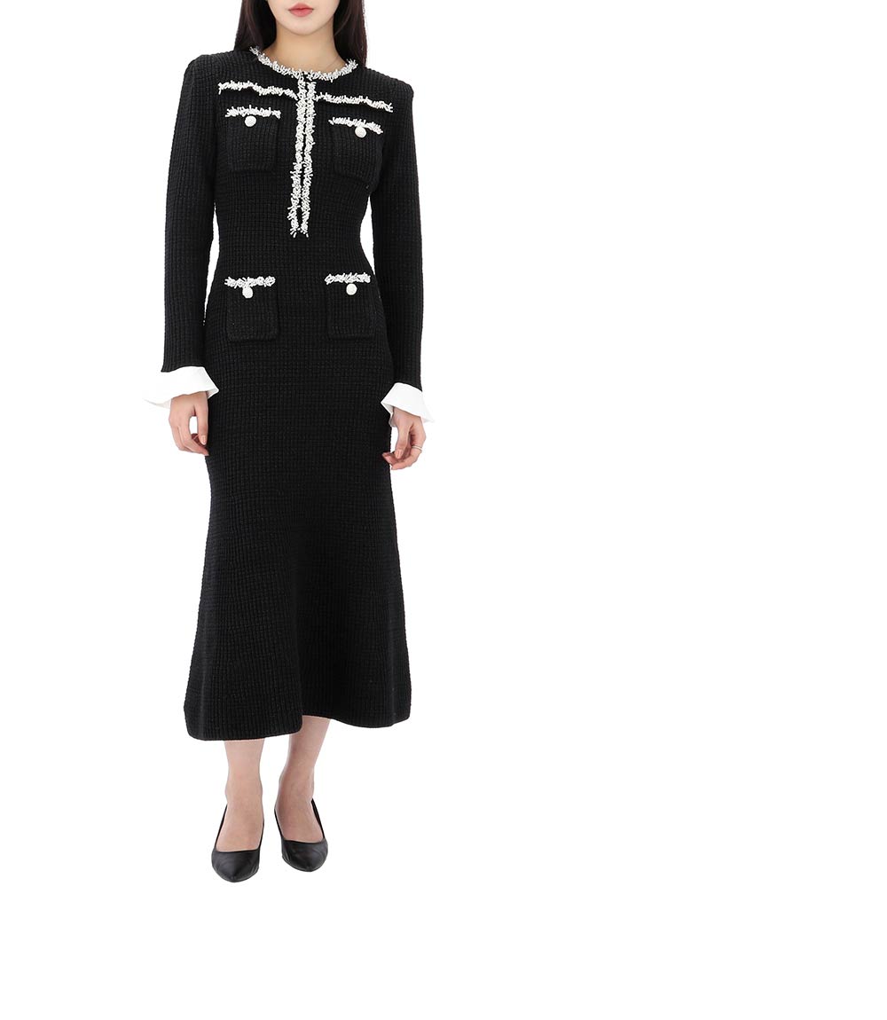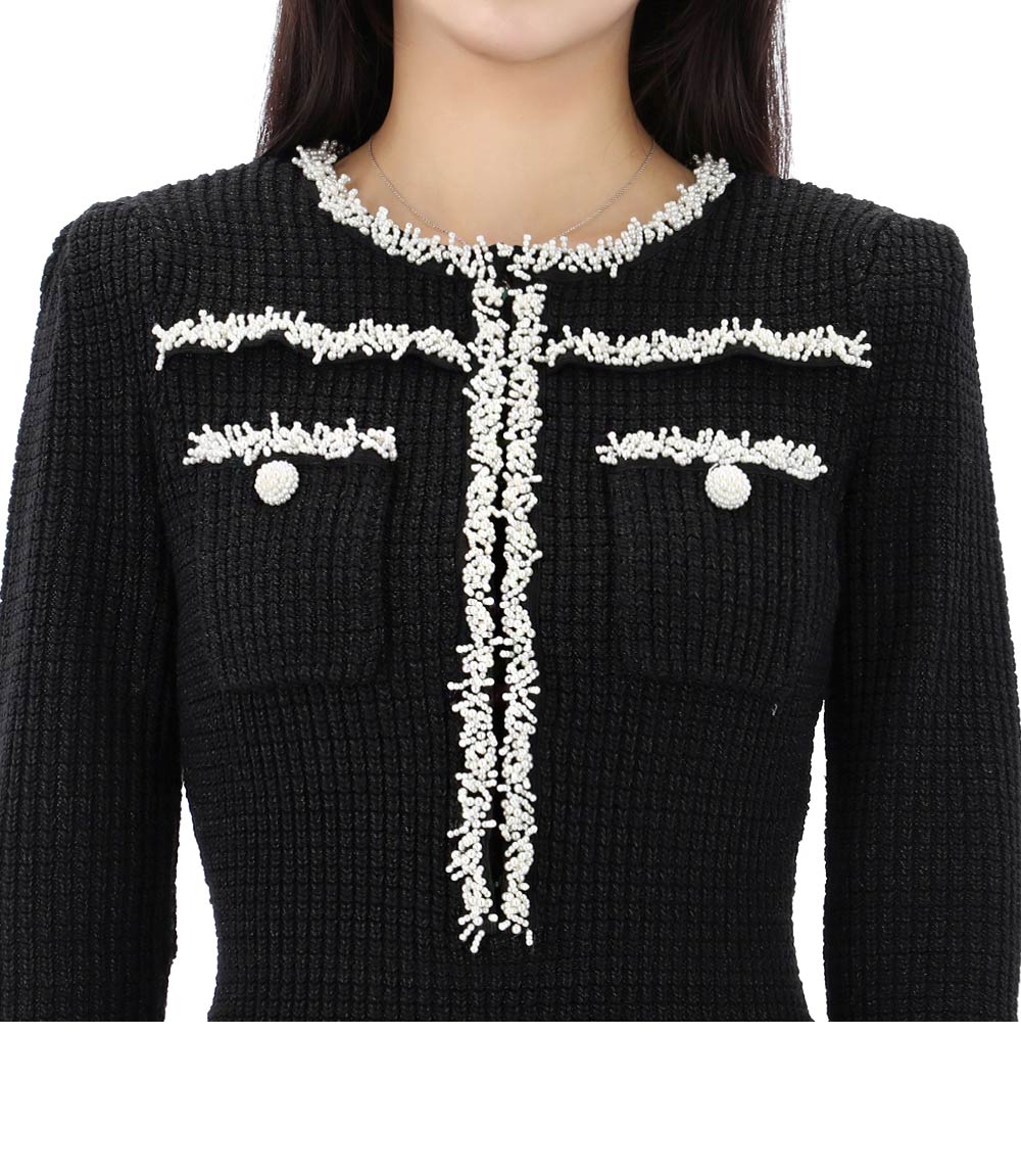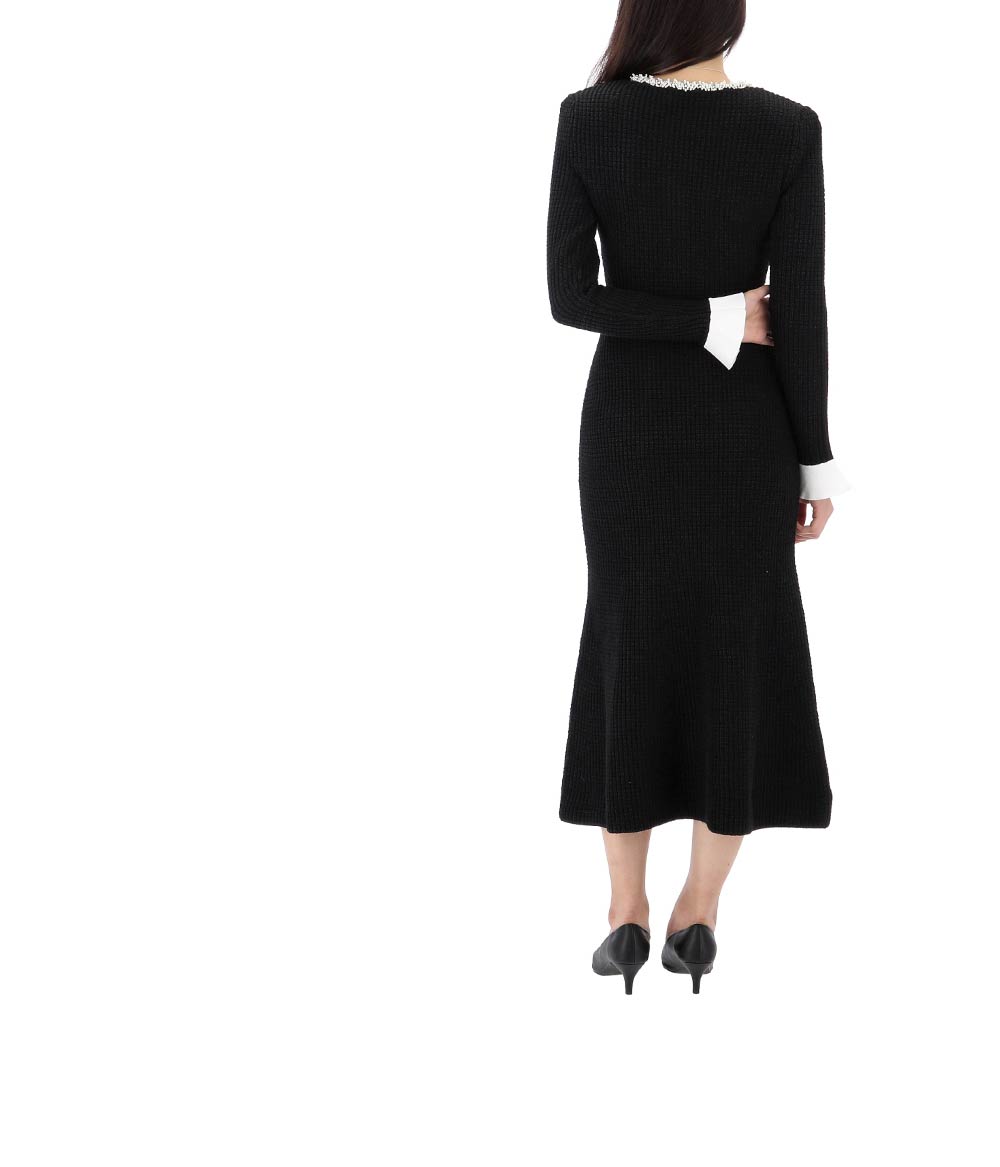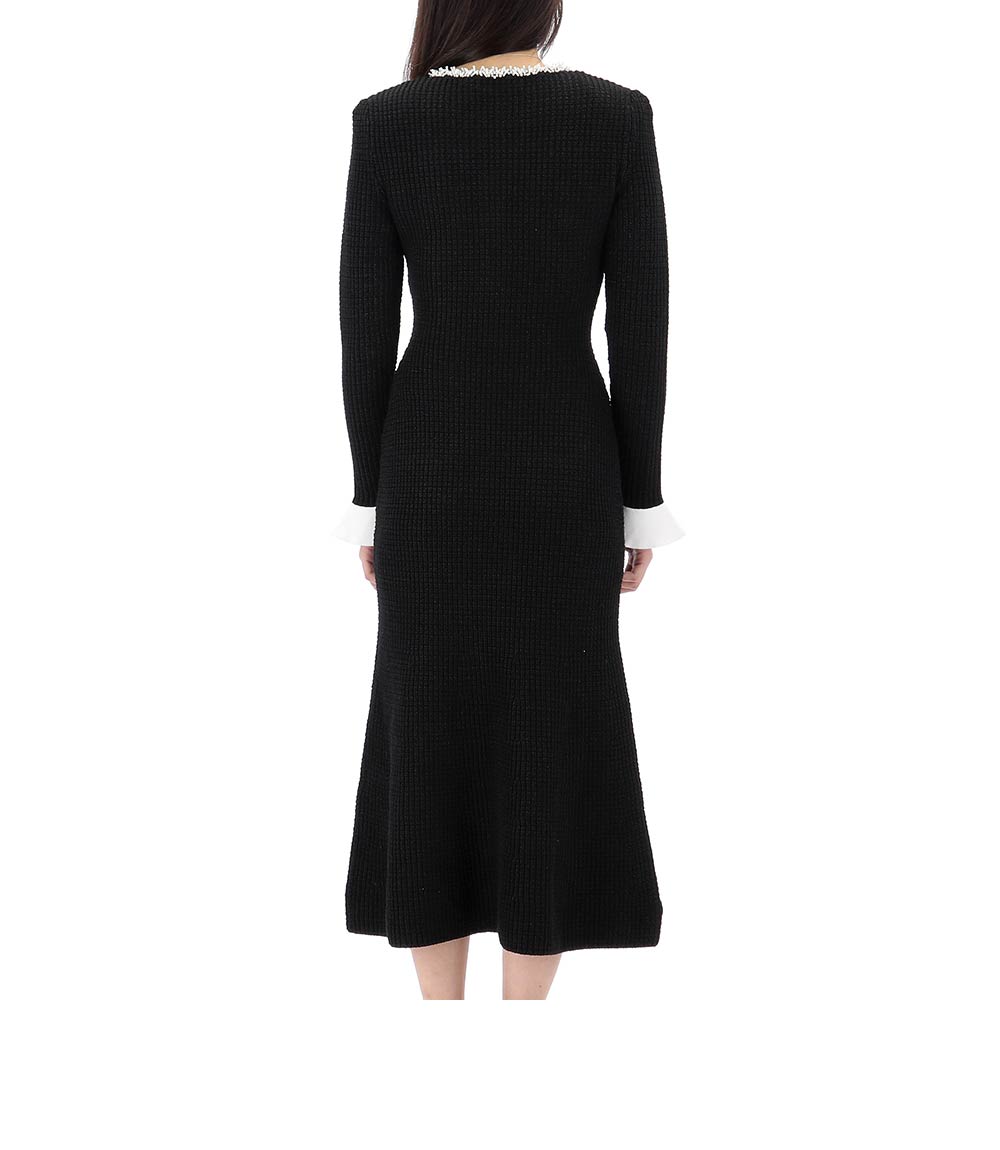 knit midi dress with pearl trim 25ss rs25087mb black 123904074