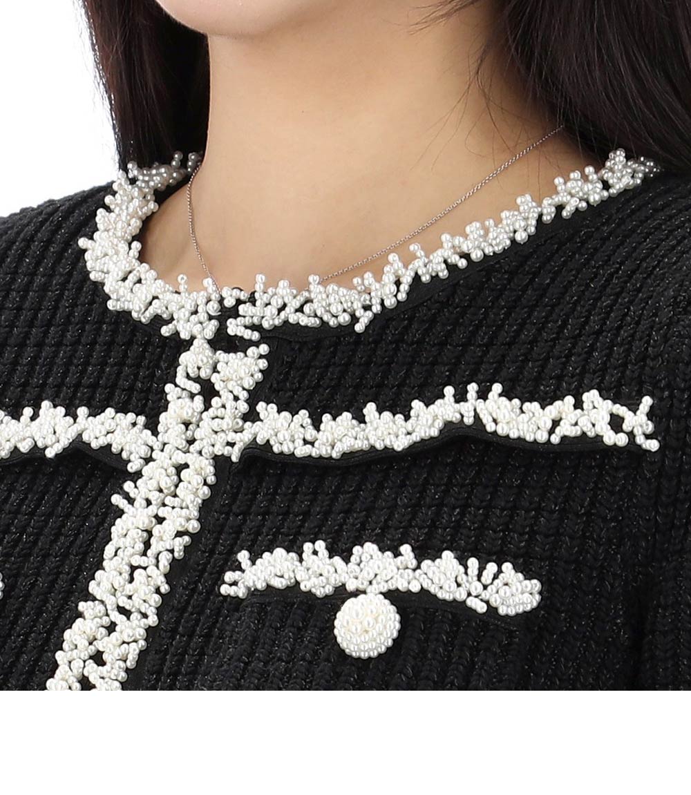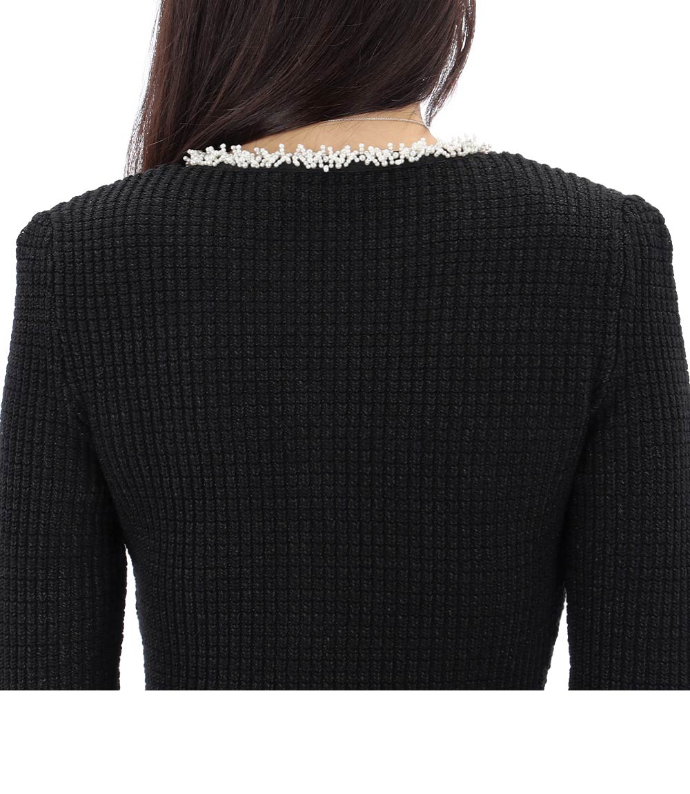 Product Name: Self-Portrait Knit Midi Dress with Pearl Trim 25SS RS25087MB BLACK 123904074