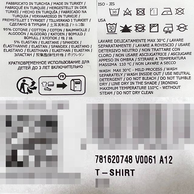 - Material: Refer to tags, labels, etc.