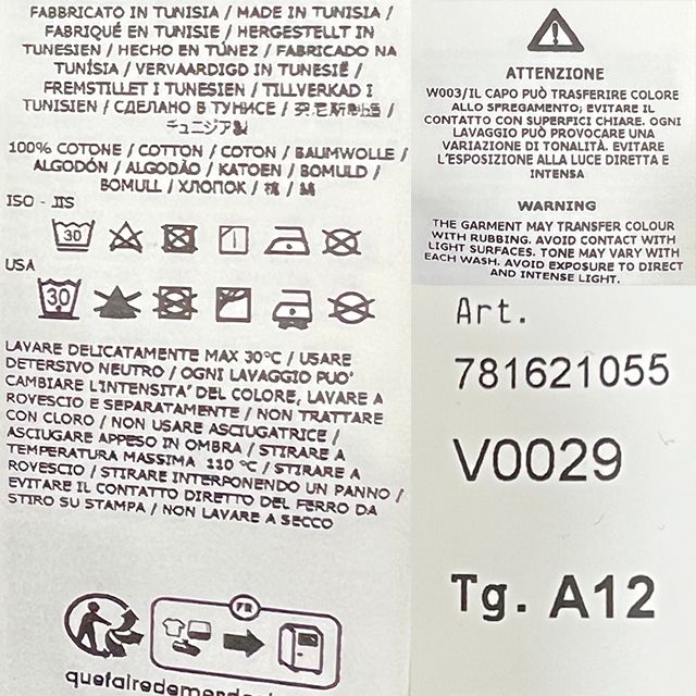 - Material: Refer to tags, labels, etc.