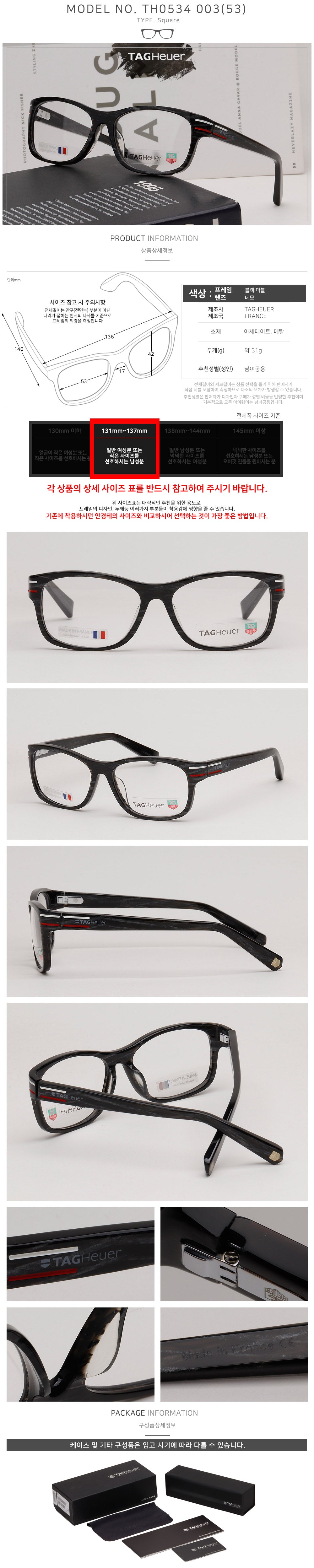 Product Name: Tag Heuer Eyeglass Frame TH0534 003 Black Marble Pattern Square Acetate 151053486
