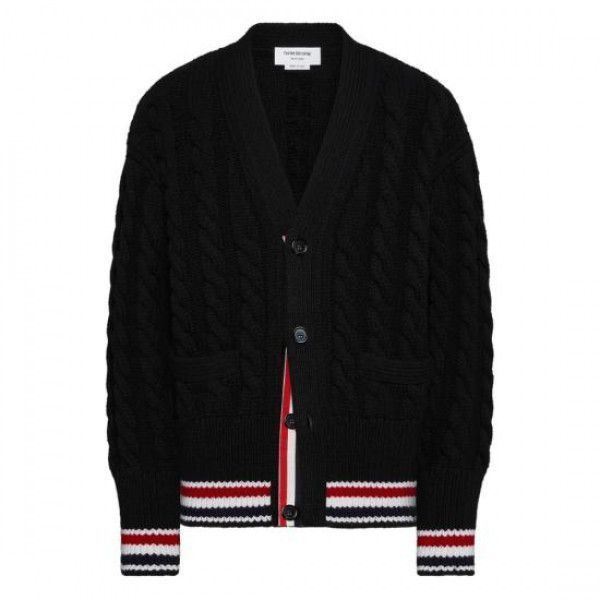 Product Name: Thom Browne Merino Baby Cable Stitch RWB Striped Sweater MKC622A Y1005 001 152201381