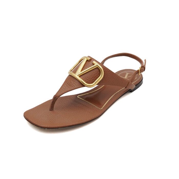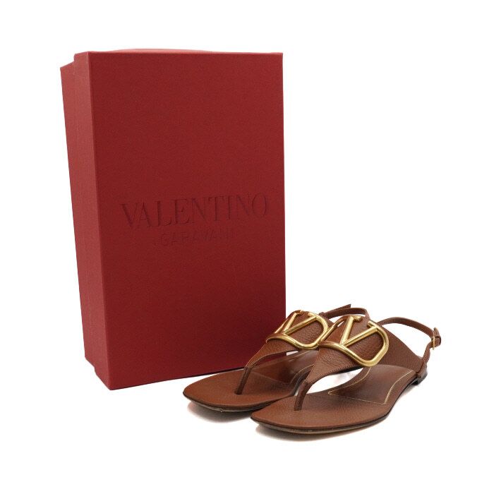Product Name: Valentino Brown Leather V Logo Flip Flop Sandals Women AA54571 152317197