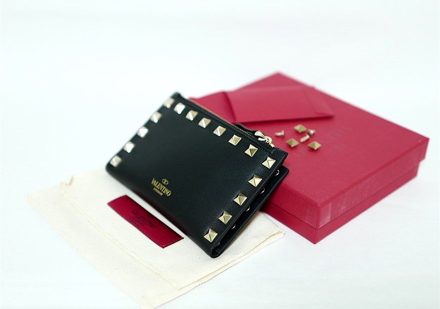 Product Name: Valentino ROCKSTUD LEATHER FLAP CARD HOLDER WITH ZIP COIN PURSE 0605 BOL 30481661