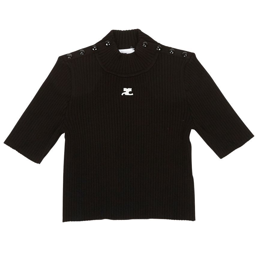 Product Name: Courreges 323MPU071FI0001 BLACK Women's Cropped Short Sleeve Knit 96307075